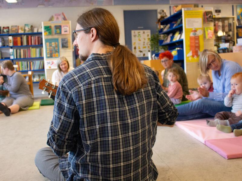 På alle afdelinger af Jammerbugt Bibliotekerne afholder vi musikalsk legestue.